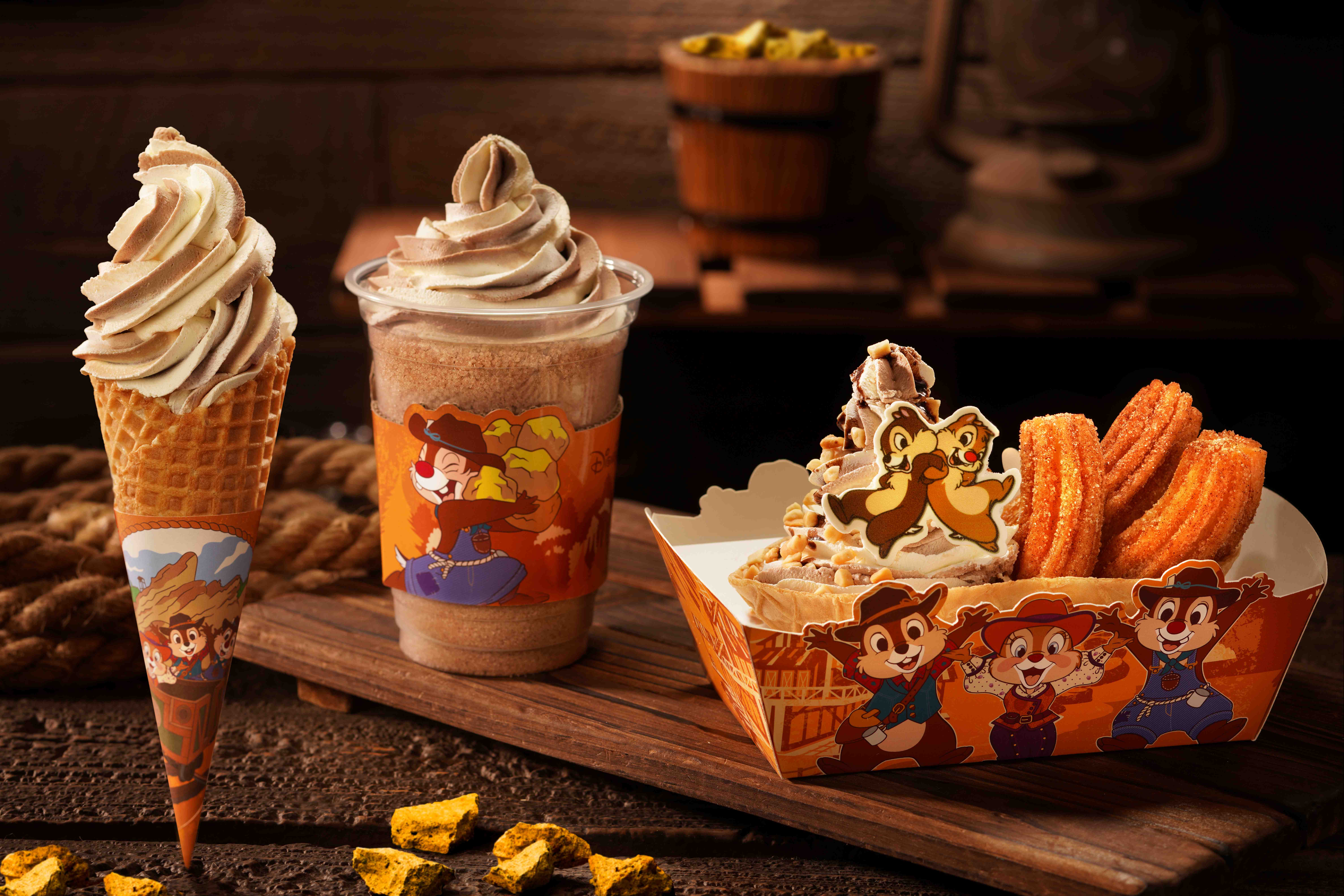 幸福黃金石小食亭的特色小吃和甜點,每款美食均換上全新冒險家造型的鋼牙奇奇、大鼻帝帝與克莉絲主題包裝,從炸雞粒配粟米片到港式奶茶沙冰配軟雪糕,為賓客帶來結合味覺與視覺的雙重驚喜!