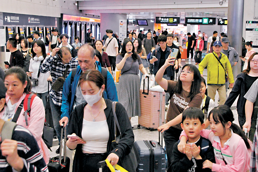 今日是香港的復活節連清明節共5日小長假首天,再迎來旅遊高峰期,不少香港巿民昨日在假期前夕已紛紛外遊,亦有內地旅客來港休閒消費。香港文匯報記者昨日在高鐵西九龍站觀察,只見現場人流絡繹不絕,拿着大包小包的行李匆忙趕車,而昨日及今日前往內地熱門城市的高鐵票早已售罄,小長假期間只有小量到內地熱門城市的高鐵票。部分市民趁假期回鄉祭祖,有巿民則選擇到內地遊玩,表示中東局勢令油價高企,航班燃油附加費增加,故選擇到內地旅遊;有交流團亦趁小長假前往內地深度交流。雖然復活節非內地假期,但仍有不少內地旅客趁機來港觀光,「短途為主、注重體驗。」